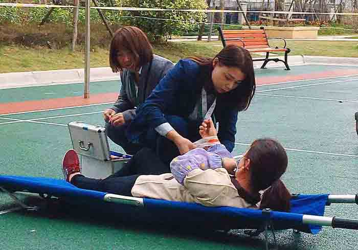 隨著警鈴的響起(qǐ),消防演練拉開序幕,疏散組、通訊組、滅火組等各組人員各就(jiù)各位,各司其職,演練緊張有序的進行;人員疏散組到達起(qǐ)火樓層,迅速組織被(bèi)困人員在火場濃煙狀態下疏散,以布毛巾捂住扣鼻低姿態從火場撤出,防止煙霧的吸入,並按規定的路線,引導他們從指定的安全出口有序逃生,避免擁擠摔倒現象的發生,在最短的時間內將人員引導到指定的安全地帶。
